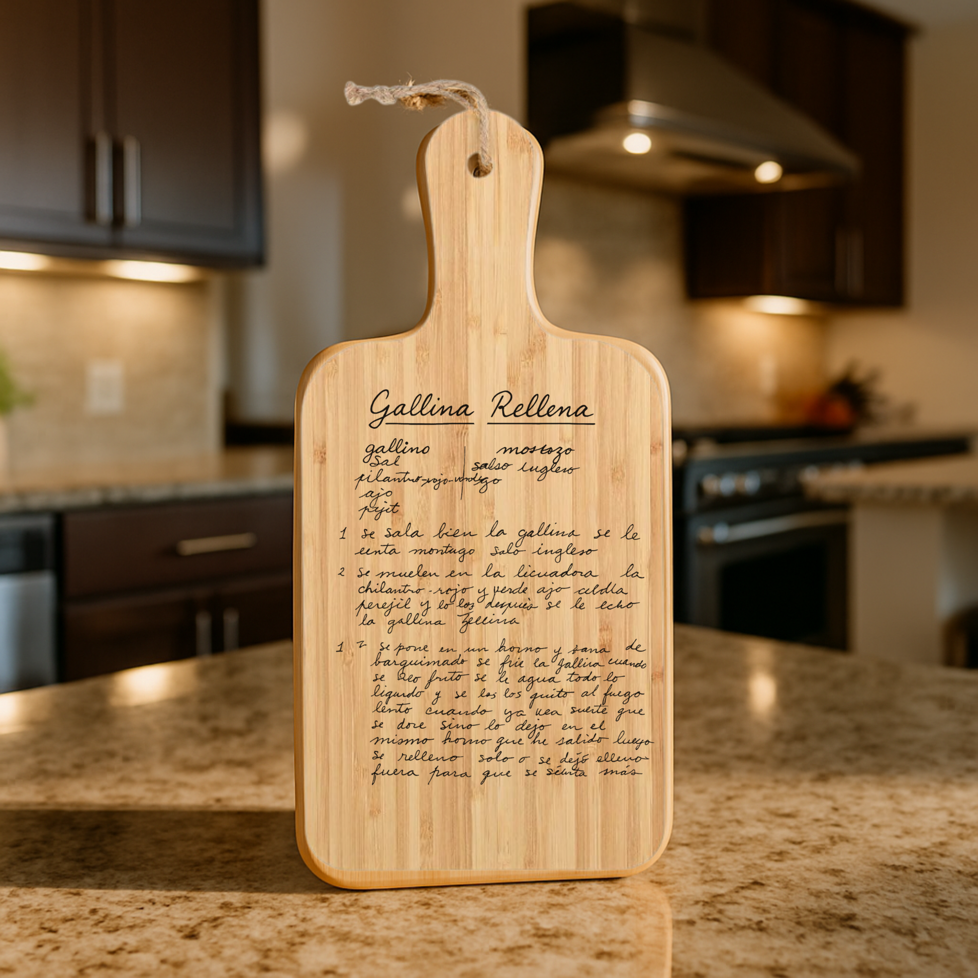 Turn a cherished family recipe into a timeless kitchen keepsake with our Custom Recipe Cutting Board. Each board is carefully engraved with your handwritten or typed recipe, making it the perfect sentimental gift for holidays, weddings, anniversaries, Mother’s Day, housewarmings, or as a warm reminder of a loved one’s handwriting.